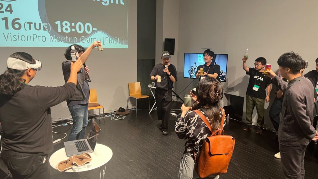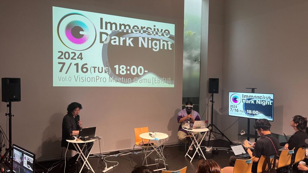 2024年7月16日(火)。何人かの有志が集まり、イマーシブに関するイベントを始めました。それが『イマーシブ・ダークナイト』です。最初はこれがどのようになっていくのかなんて想像も出来ませんでした。ただ、最初はみんなが集まって交流する場が作れたらいいな、くらいの気持ちで始めたのです。有志の一人、渡邊課の渡邊徹さんの所属するConcentのコミュニティスペースamuでささやかなプレイベント『イマーシブ・ダークナイトvol.0 Vision Pro MeetUp』が開かれました。
